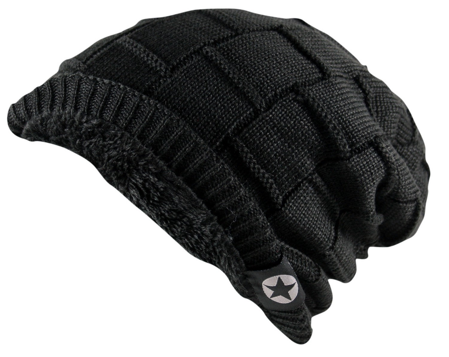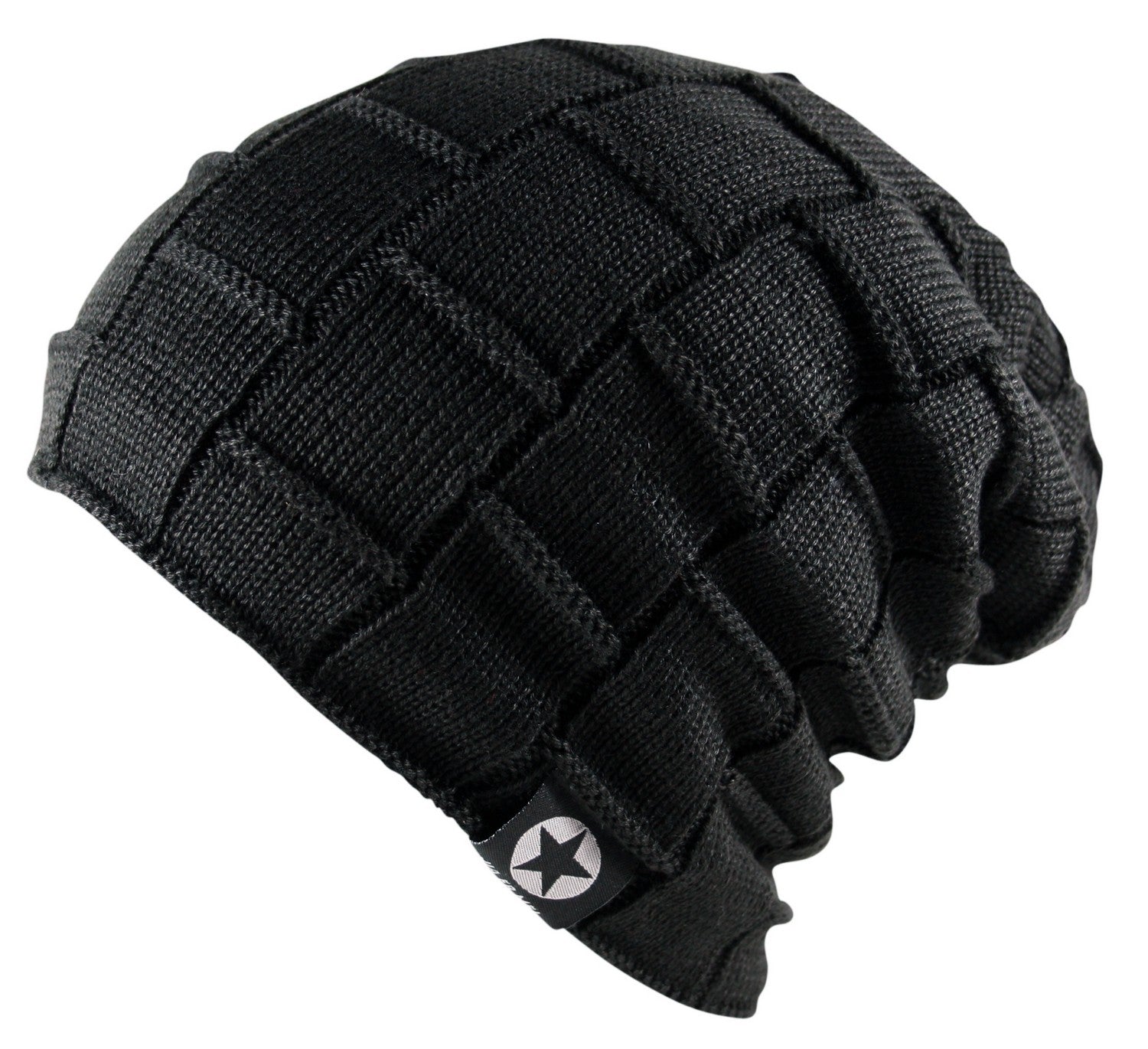 Unisex Soft Fleece Slouch Cable Knit Beanie Hat Wool Black