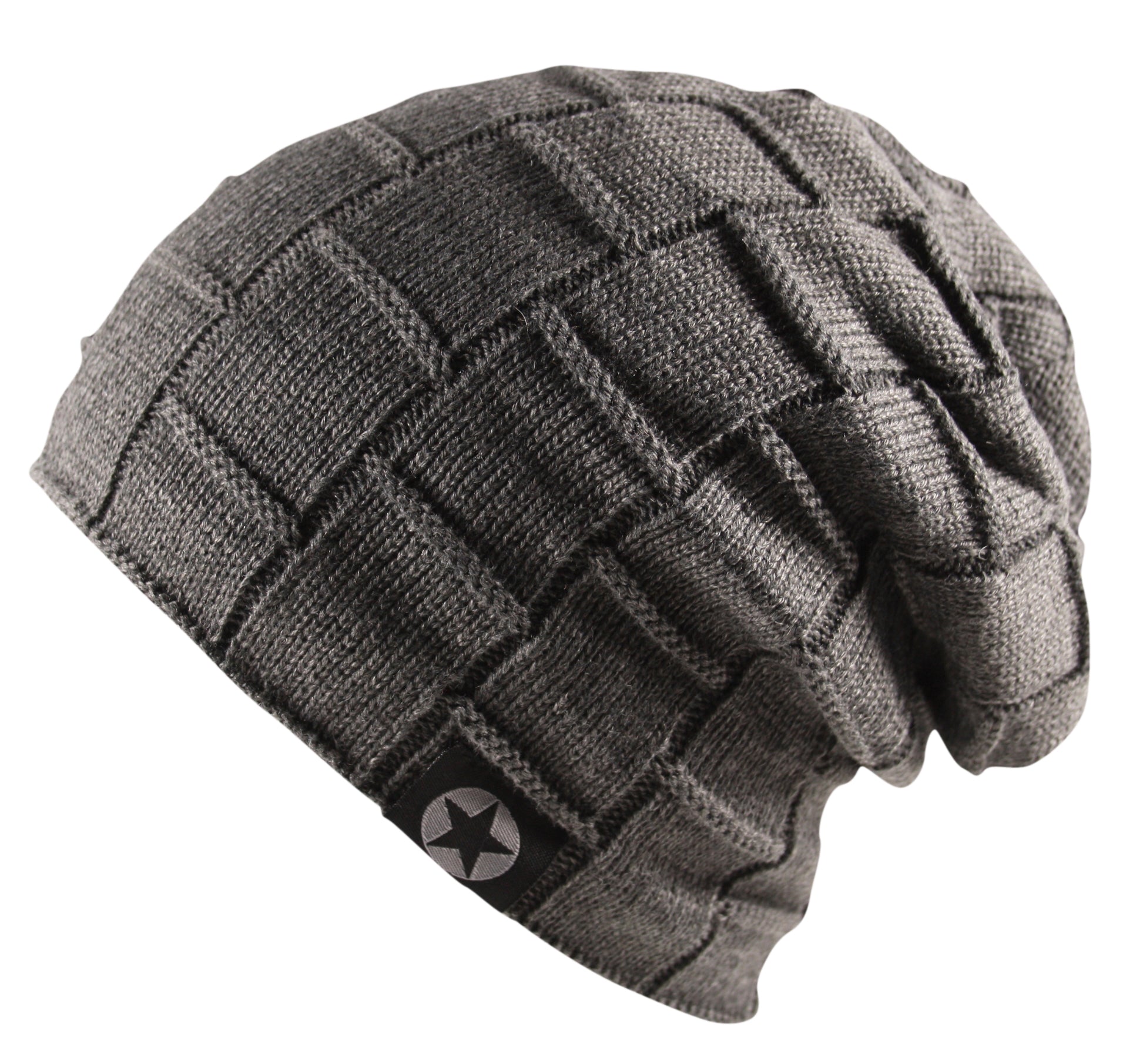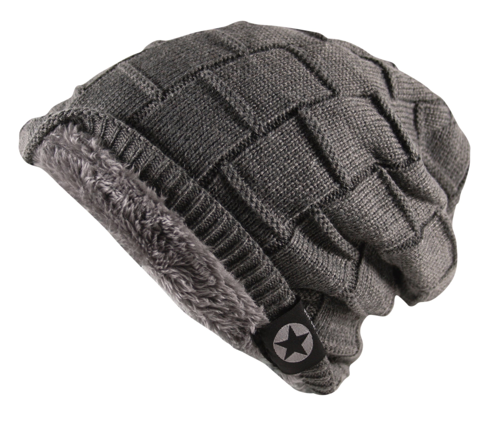 Unisex Cable Knit Textured Slouch Beanie Hat Ski Fleece Lined Wool Grey