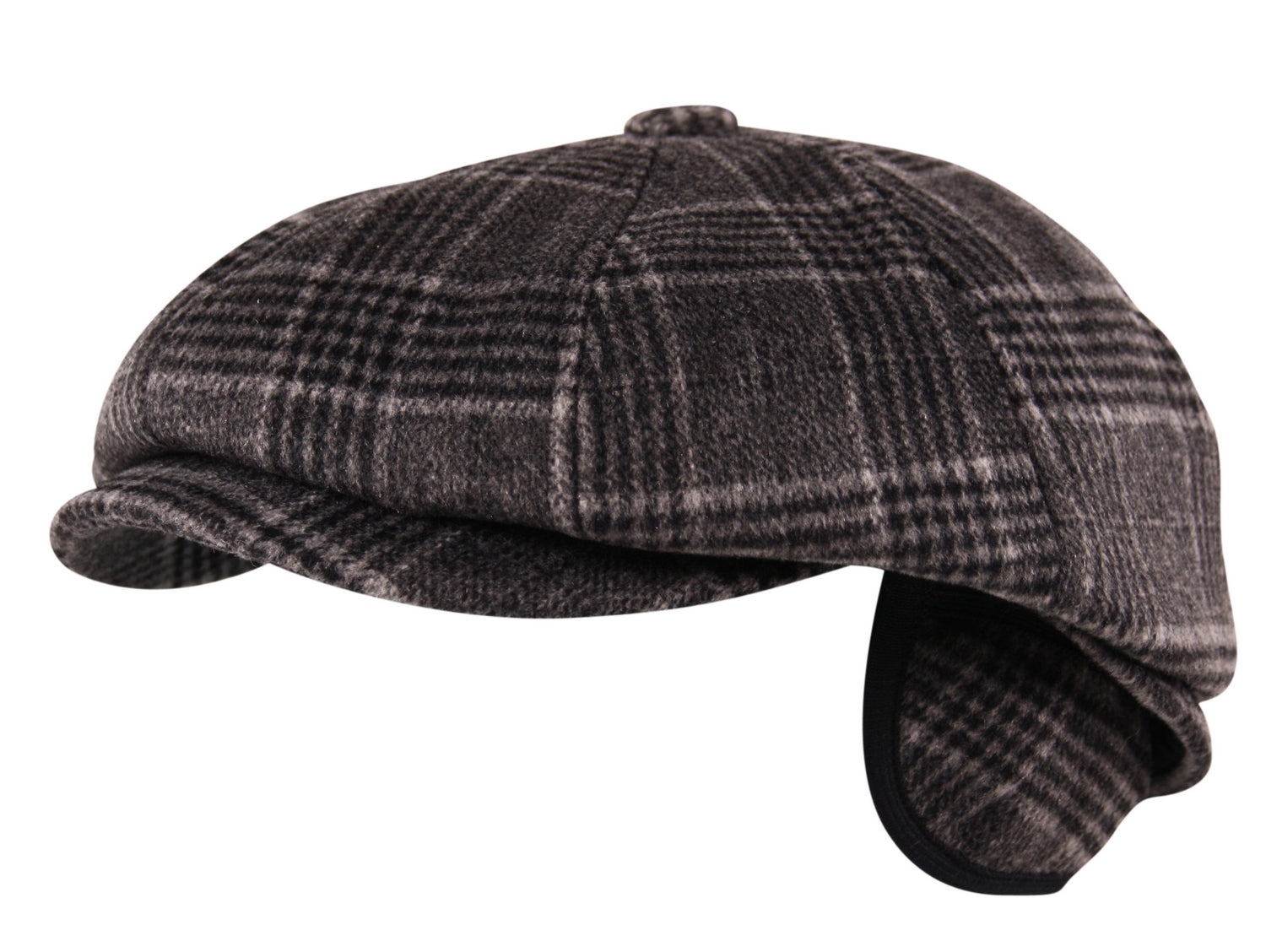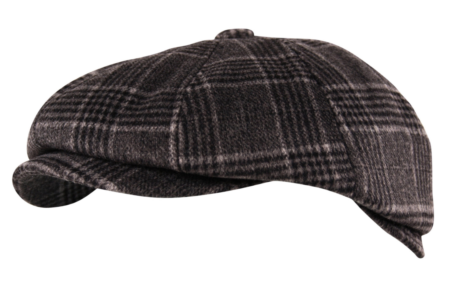 Brushed Wool Flannel 8 Panel Flat Cap Hat Newsboy Tweed Check Grey