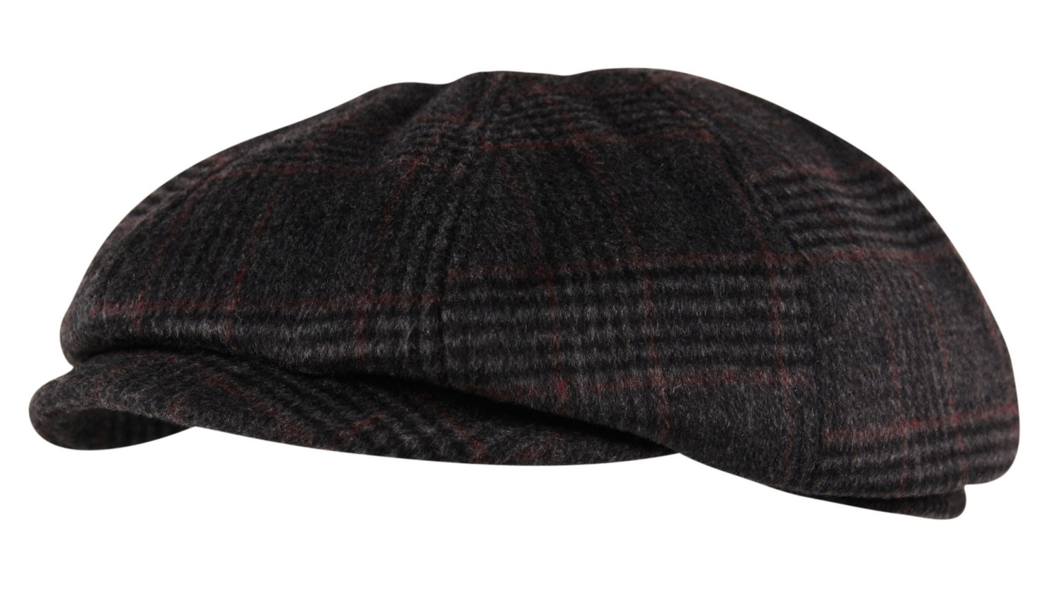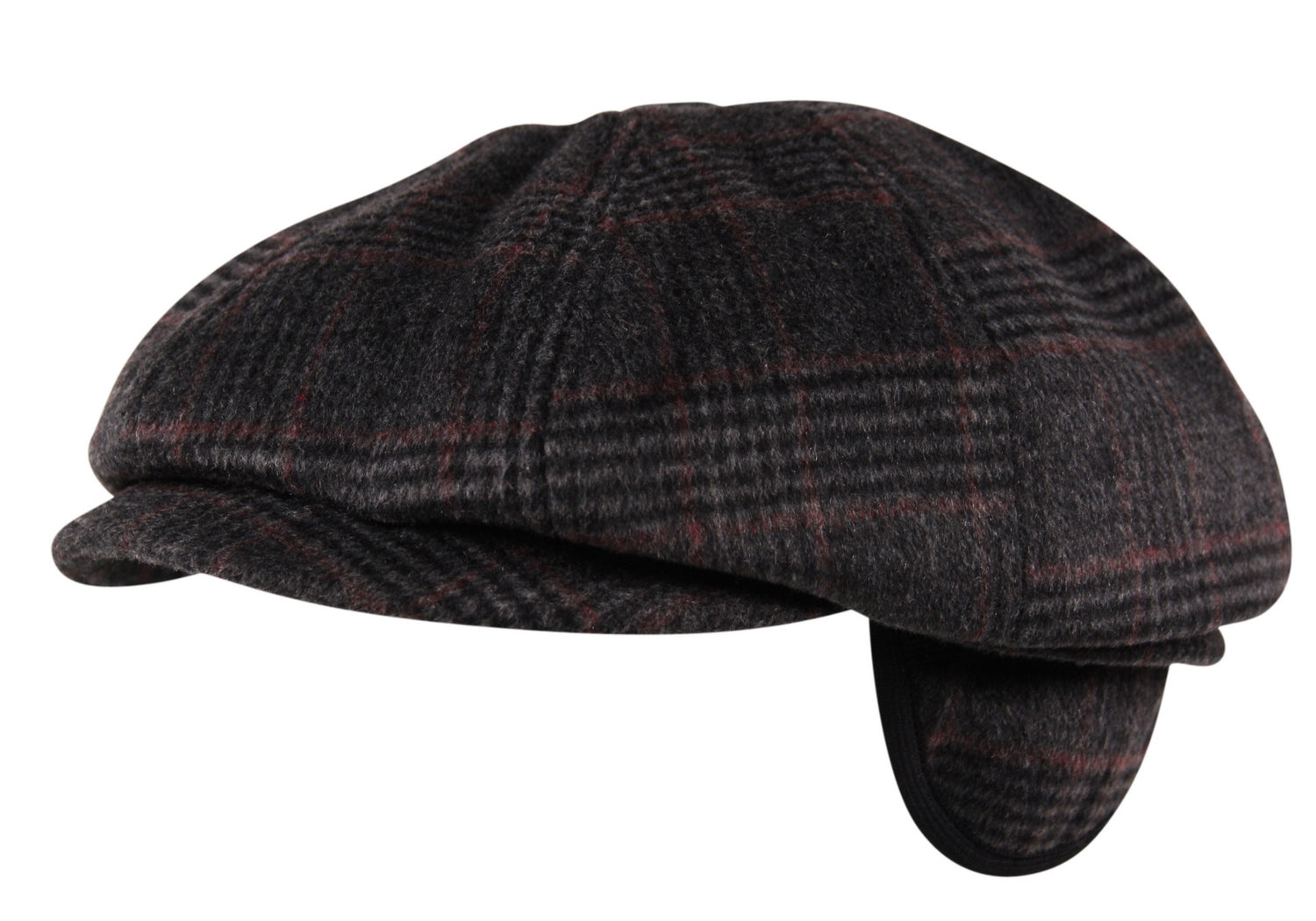 Brushed Wool Flannel 8 Panel Flat Cap Hat Ear Flap Baker Boy Tweed Check Charcoal