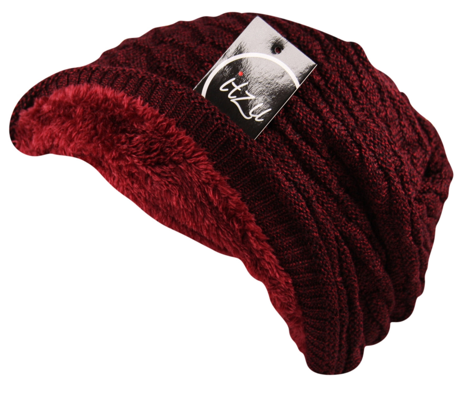 Unisex Knit Slouch Beanie Ribbed Hat in Maroon
