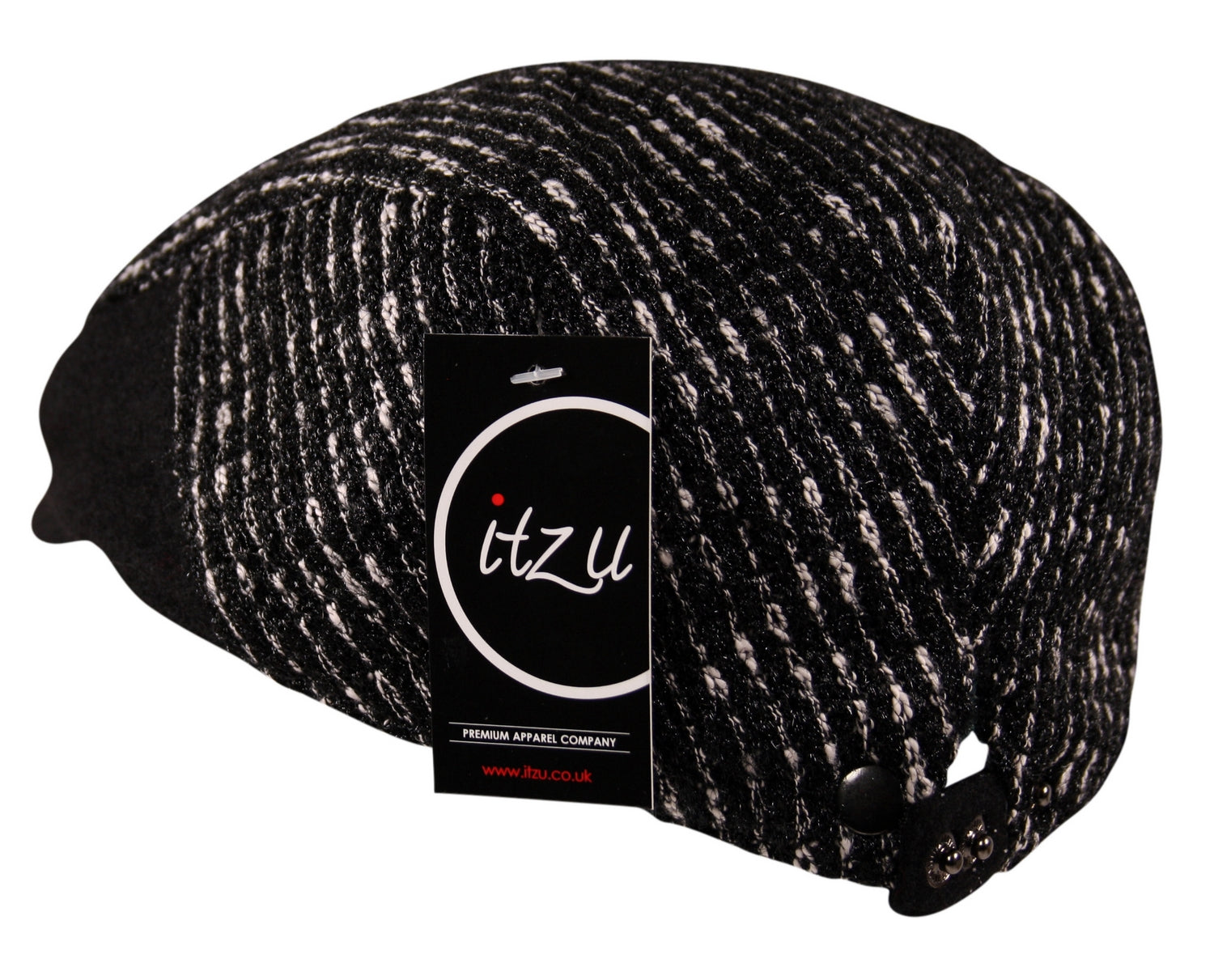 Wool Striped Flat Cap Hat in Black